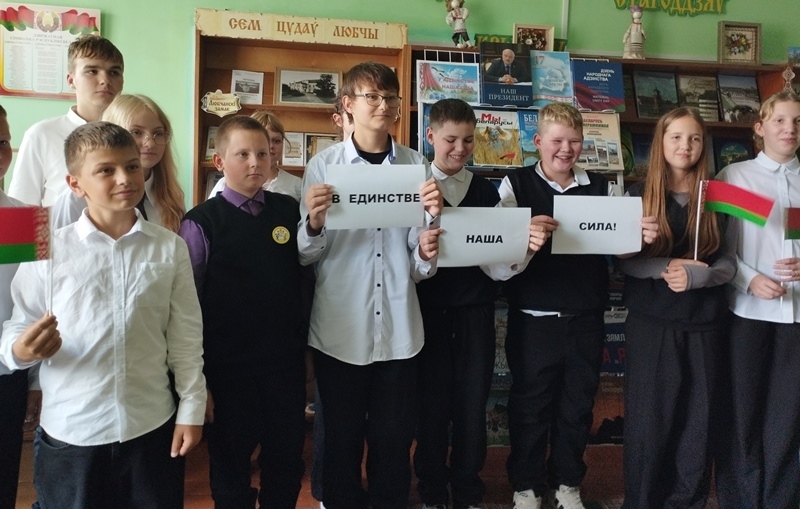 Да мерапрыемства была падрыхтавана кніжная выстава “У адзінстве наша сіла” з літаратурай пра суверэнную Беларусь.