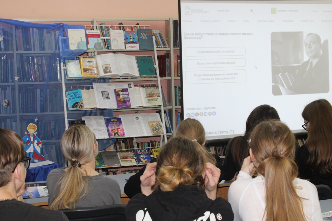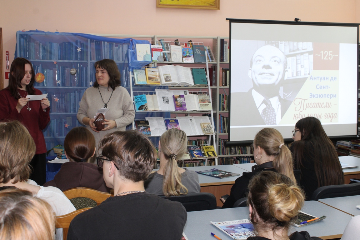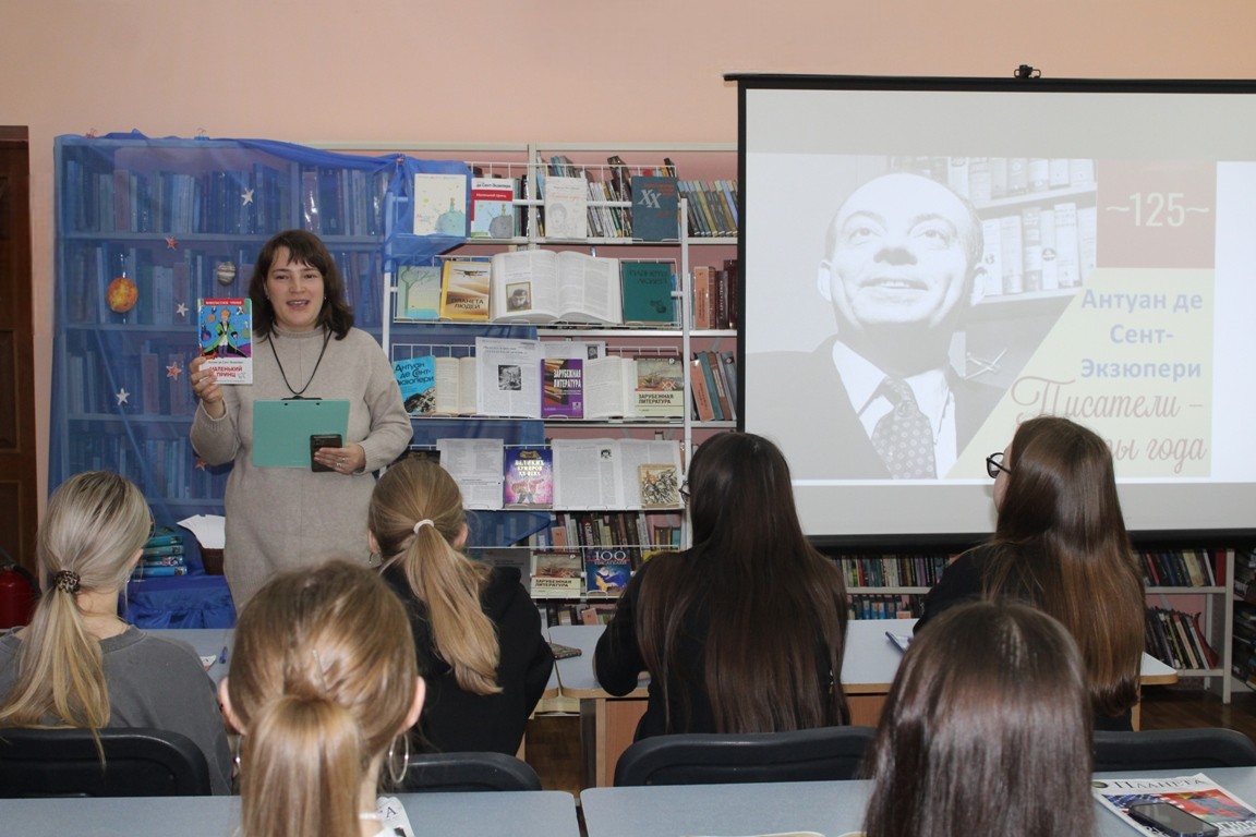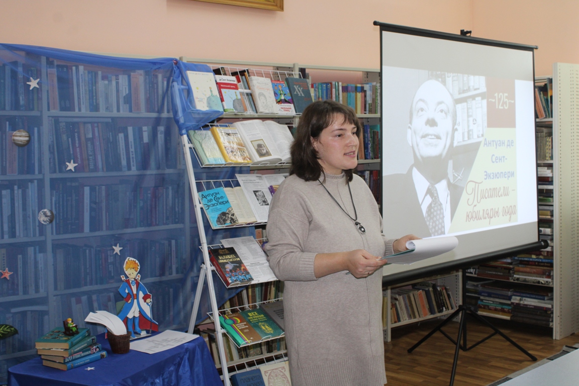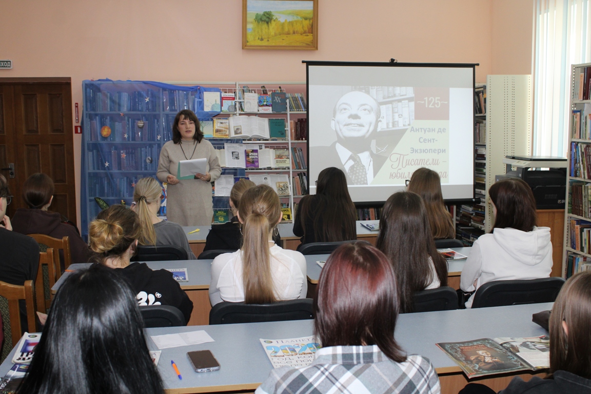 4 ноября в Новогрудской районной библиотеке прошёл день одного автора «Лётчик, написавший небеса», посвящённый 125-летию со дня рождения писателя, поэта, журналиста, сценариста и профессионального лётчика Антуана де Сент-Экзюпери. Учащиеся Новогрудского торгово-экономического колледжа узнали много интересных фактов из жизненного и творческого пути романтика и философа. Познакомились с историей создания знаменитой аллегорической сказки «Маленький принц», просмотрели видеофрагменты экранизаций, снятых по мотивам этого произведения. С интересом юноши и девушки отвечали на вопросы биографического теста.