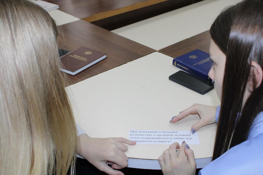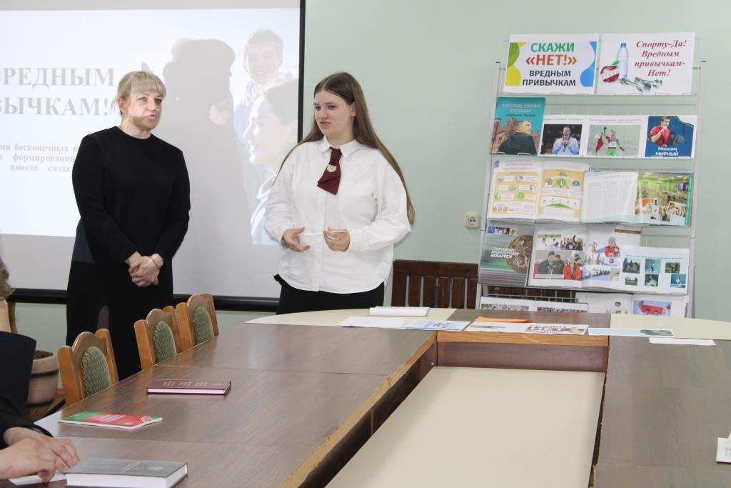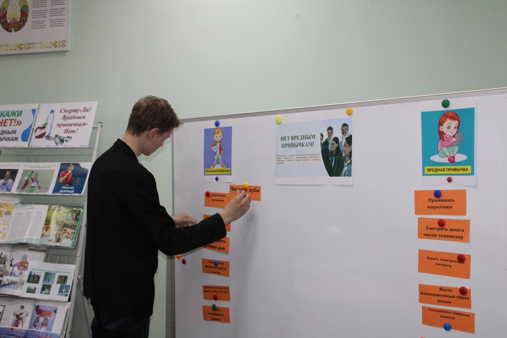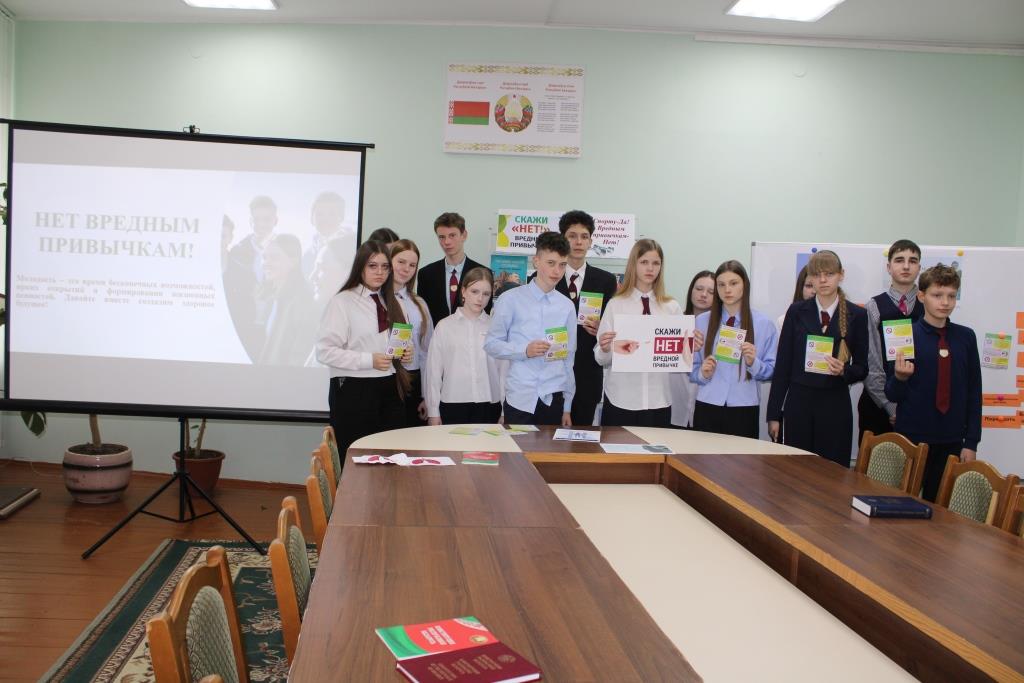 7 красавіка, у рамках праекта «Ведаць закон змоладу», прайшоў інфармацыйны дайджэст «Шкодныя звычкі», прымеркаваны да Сусветнага дня здароўя. У ходзе інтэрактыўнай гутаркі з элементамі трэнінгу вучні дазналіся аб узнікненні Сусветнага дня здароўя, вядомых беларускіх спартсменах і іх выказваннях аб здароўі. Глядзелі відэаролік аб шкодзе курэння, правільна размеркавалі для сябе якія шкодныя і якія карысныя звычкі. Даведаліся, як шкодныя звычкі ўплываюць на здароўе падлетка, на ўсё далейшае жыццё маладога чалавека, як супрацьстаяць гэтым згубным звычкам. Асаблівую ўвагу надалі такой шкоднай звычцы сучаснай моладзі як курэнне. А таксама, хлопцы і дзяўчаты, шукалі, дзе замацаваны асноўныя палажэнні па абароне здароўя грамадзян у Рэспубліцы Беларусь. Разам навучэнцы прыйшлі да высновы, што трэба весці здаровы лад жыцця, мець захапленні, якія садзейнічаюць самаразвіццю і ўмацаванню здароўя.