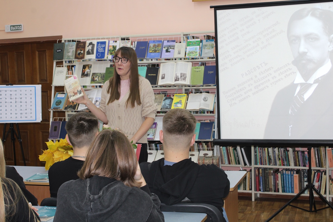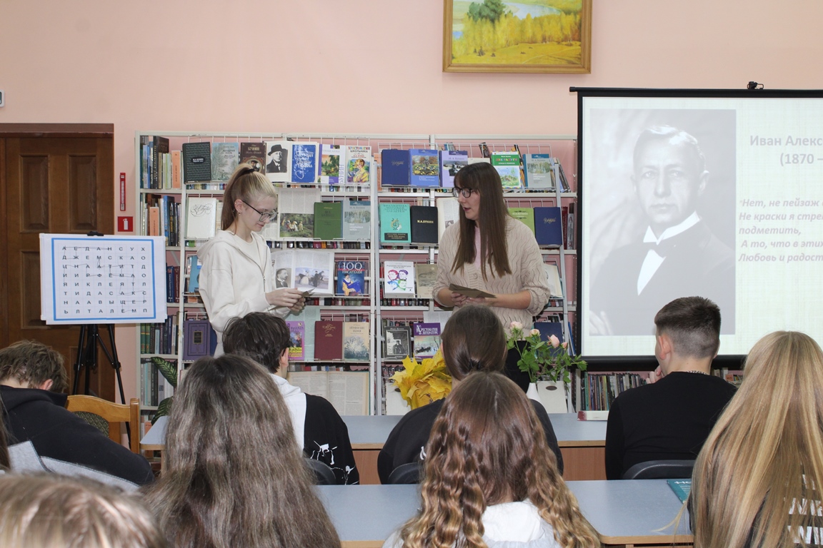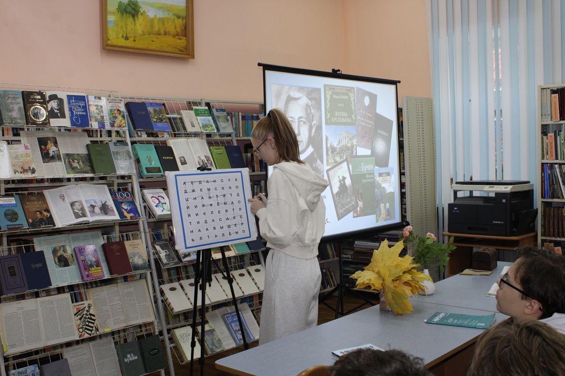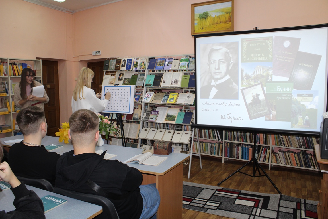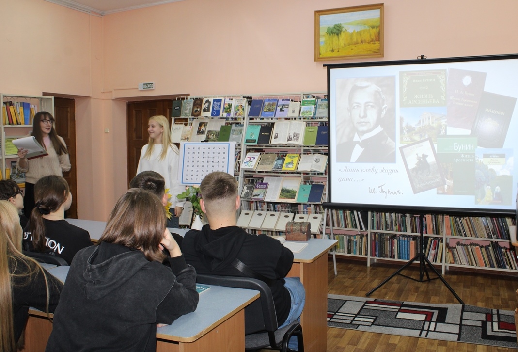21 кастрычніка Навагрудская раённая бібліятэка ладзіла літаратурную гасцёўню “Иван Бунин. Жизнь в прозе и стихах”, прысвечаную 155-годдзю з дня нараджэння рускага пісьменніка, лаўрэата Нобелеўскай прэміі. Удзел у мерапрыемстве прынялі навучэнцы Навагрудскага гандлёва-эканамічнага каледжа. Агляд-прэзентацыя «Бунін: імя і час» пазнаёміла з жыццёвым і творчым лёсам юбіляра. Шэраг інтэрактыўных інтэлектуальных заданняў адкрылі цікавыя факты з біяграфіі майстра літаратурнага слова, а таксама дазволілі паглыбіць веды пра творчую спадчыну пісьменніка.