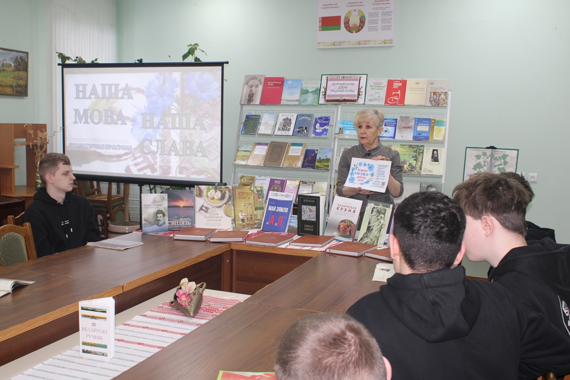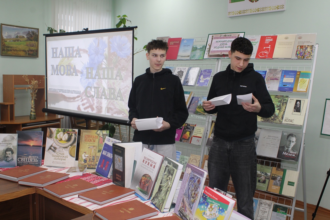 19 лютага Навагрудская раённая бібліятэка ладзіла літаратурную праграму “Наша мова – наша слава”, прысвечаную Міжнароднаму дню роднай мовы. Удзел у мерапрыемстве прынялі навучэнцы другога курса Навагрудскага дзяржаўнага каледжа. Быў прасочаны гістарычны шлях нашай мовы, вызначаны яе адметнасці і самабытнасць з дапамогай самых розных літаратурных крыніц. Юнакі прынялі актыўны ўдзел у шэрагу філалагічных інтэрактываў.