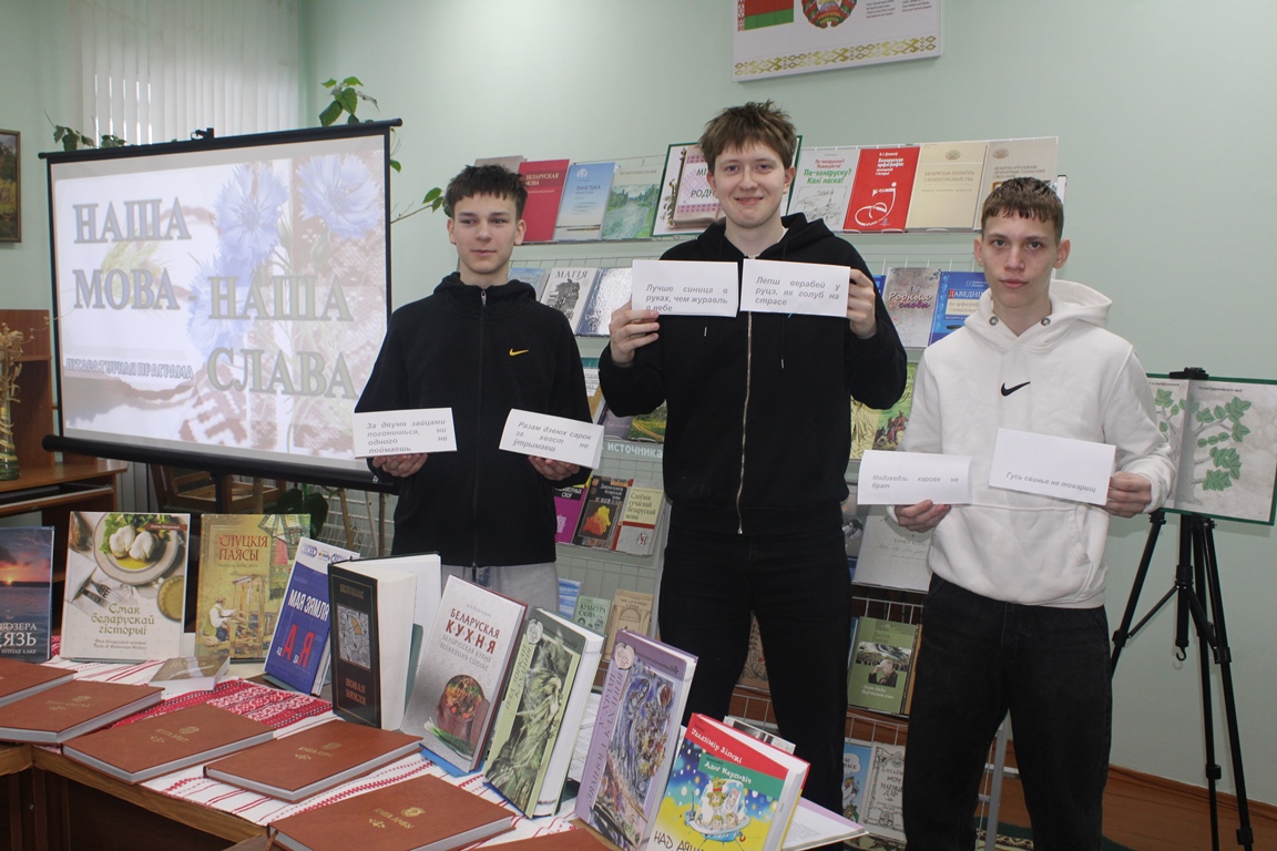 Што беларуская мова самая звонкая і мілагучная, непаўторная і загадкавая, упэўніліся ўдзельнікі мерапрыемства дзякуючы “паэтычным карункам”.  Бібліятэкар прадставіла вершамі асобныя беларускія кнігі. Навучэнцы таксама чыталі вершы беларускіх паэтаў пра родную мову. Дарэчы, у якасці пачастунку яны атрымлівалі цукеркі кандытарскай фабрыкі “Камунарка” з назвай “Родныя словы”. На кожнай цукерцы з унікальным дызайнам этыкеткі можна было знайсці цікавыя беларускія словы з унікальным арнаментам: “ветлівасць”, “удзячнасць”, “ціхамірнасць”, “пяшчота”, “натхненне”. Ім патрэбна было яшчэ і  вызначыць іх значэнне. Студэнты  актыўна  ўдзельнічалі ў разгадванні беларускіх народных загадак. Успомніць  прыказкі і прымаўкі дазволіла невялікае заданне, патрабуючае падбору да рускіх прыказак і прымавак адпаведных  ім беларускіх. Юнакі і дзяўчаты пры выкананні задання праявілі свае веды, кемлівасць і знаходлівасць. Відэакліп  пазнаёміў з прэм’ерай песні “Мова павінна жыць” у выкананні гурта “Дразды”.