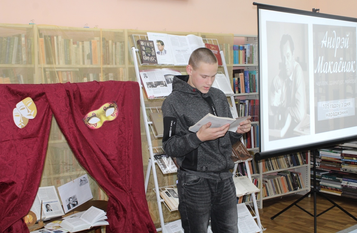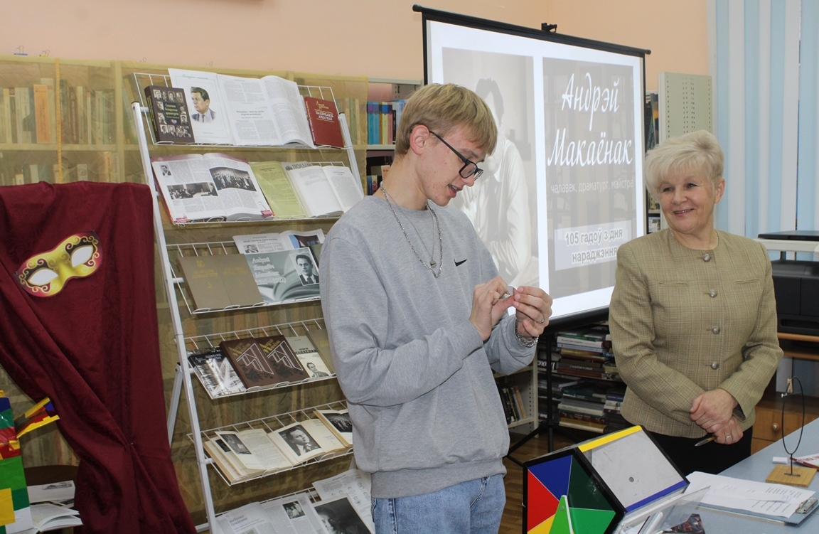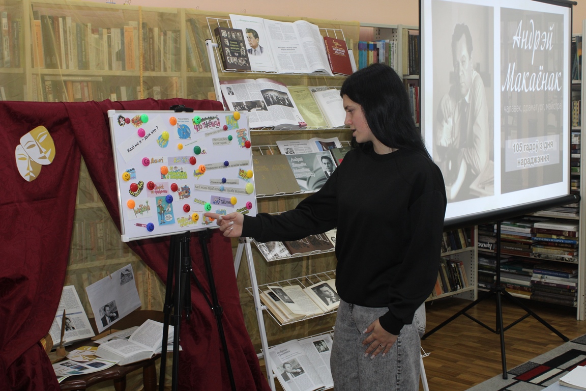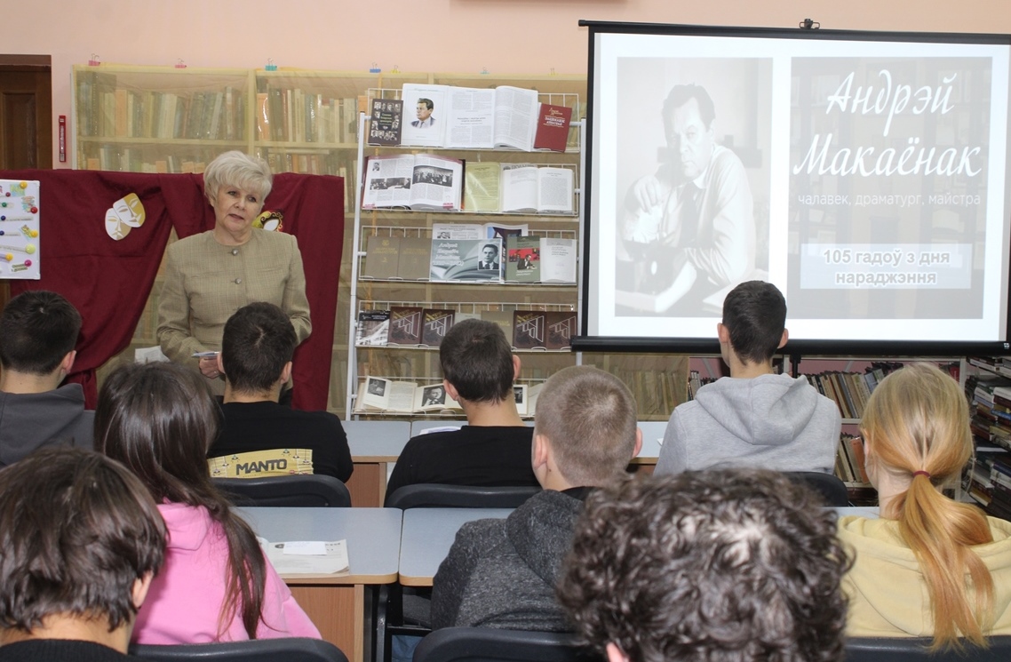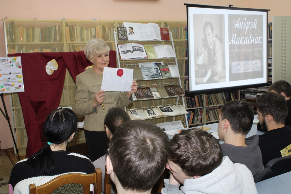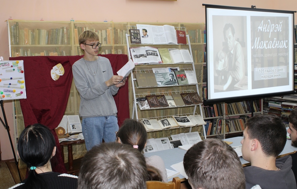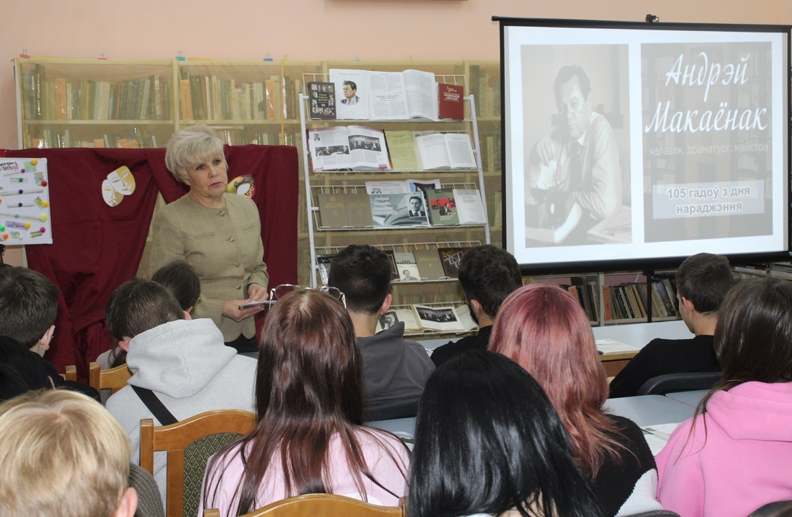 12 лістапада навучэнцы Навагрудскага каледжа тэхналогій і бяспекі наведалі літаратурную студыю “Творчая арбіта драматурга”, прысвечаную 105-годдзю з дня нараджэння беларускага пісьменніка Андрэя Макаёнка. Аповед пра жыццёвы і творчы шлях, непаўторны стыль камедыёграфа, перамяжаўся паказам відэаматэрыялаў з успамінамі пра юбіляра. Юнакі і дзяўчаты адгадвалі зашыфраваныя словы на крыптаграмах, удзельнічалі ў бліц-гульні, праяўлялі свае здольнасці пры складанні тэксту і дыялогаў з назваў артыкулаў.