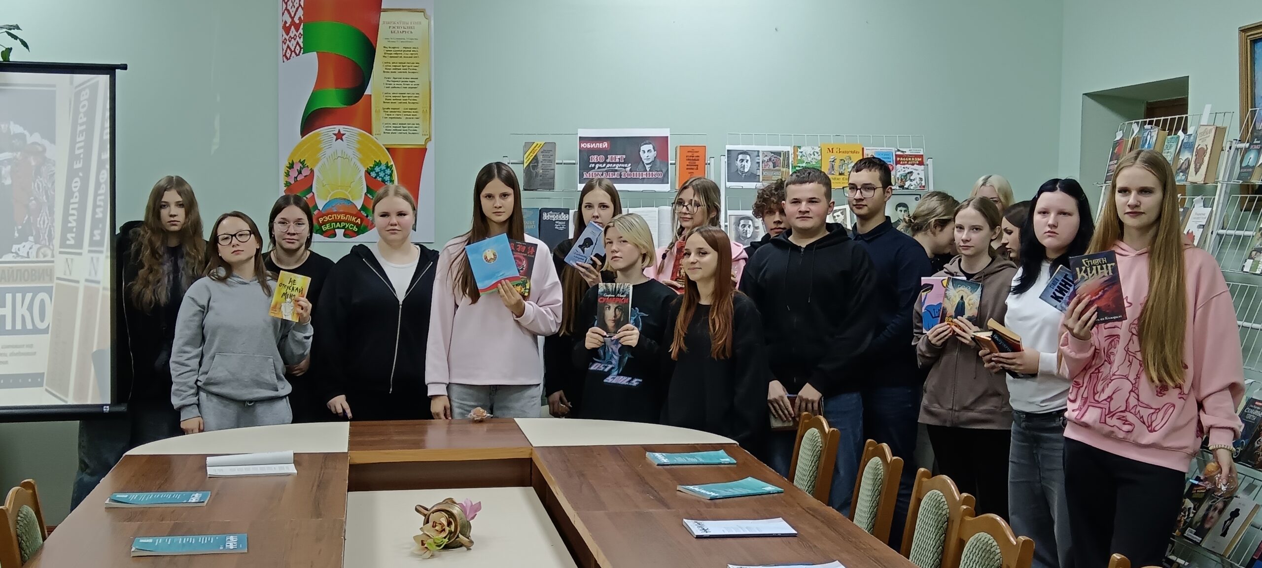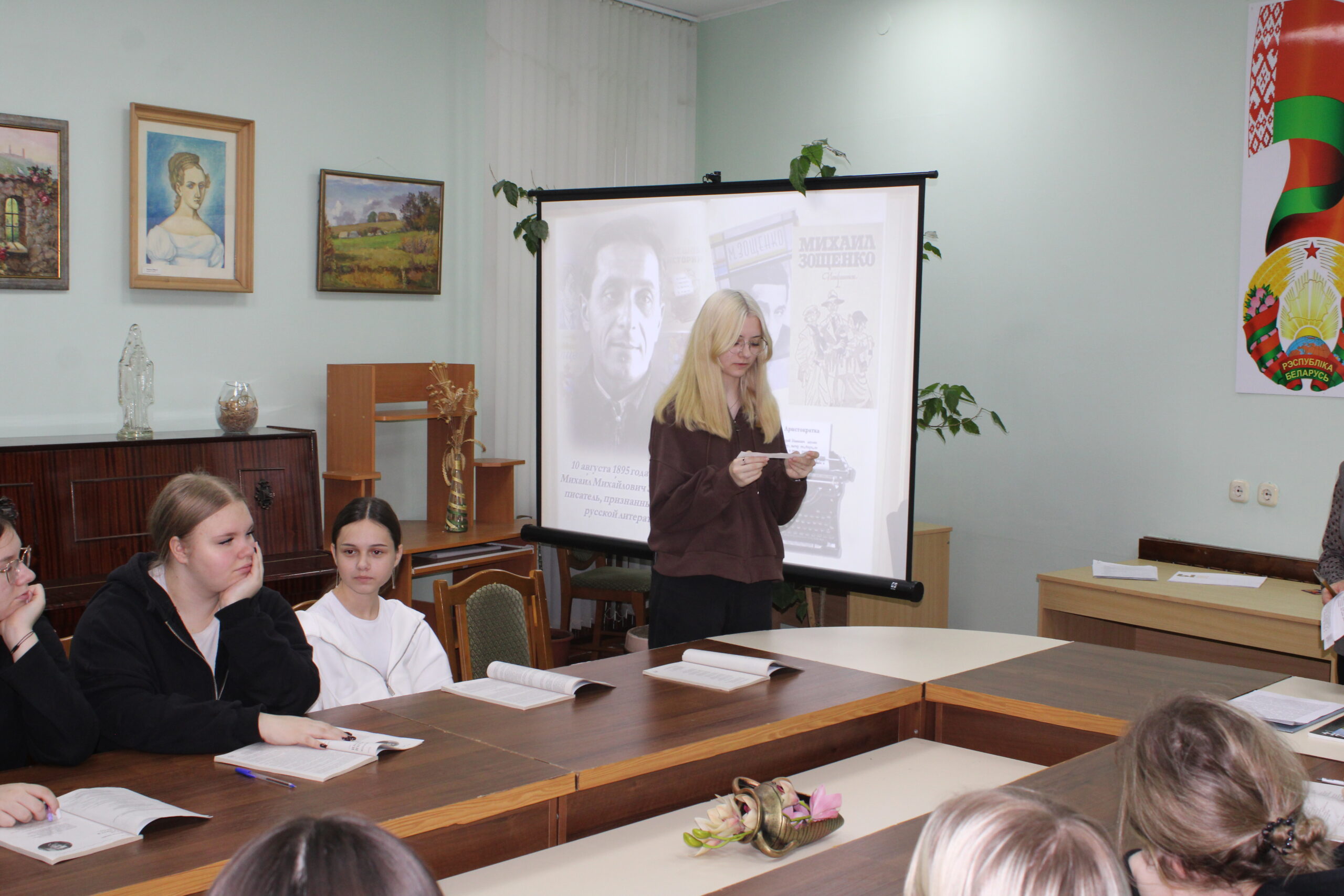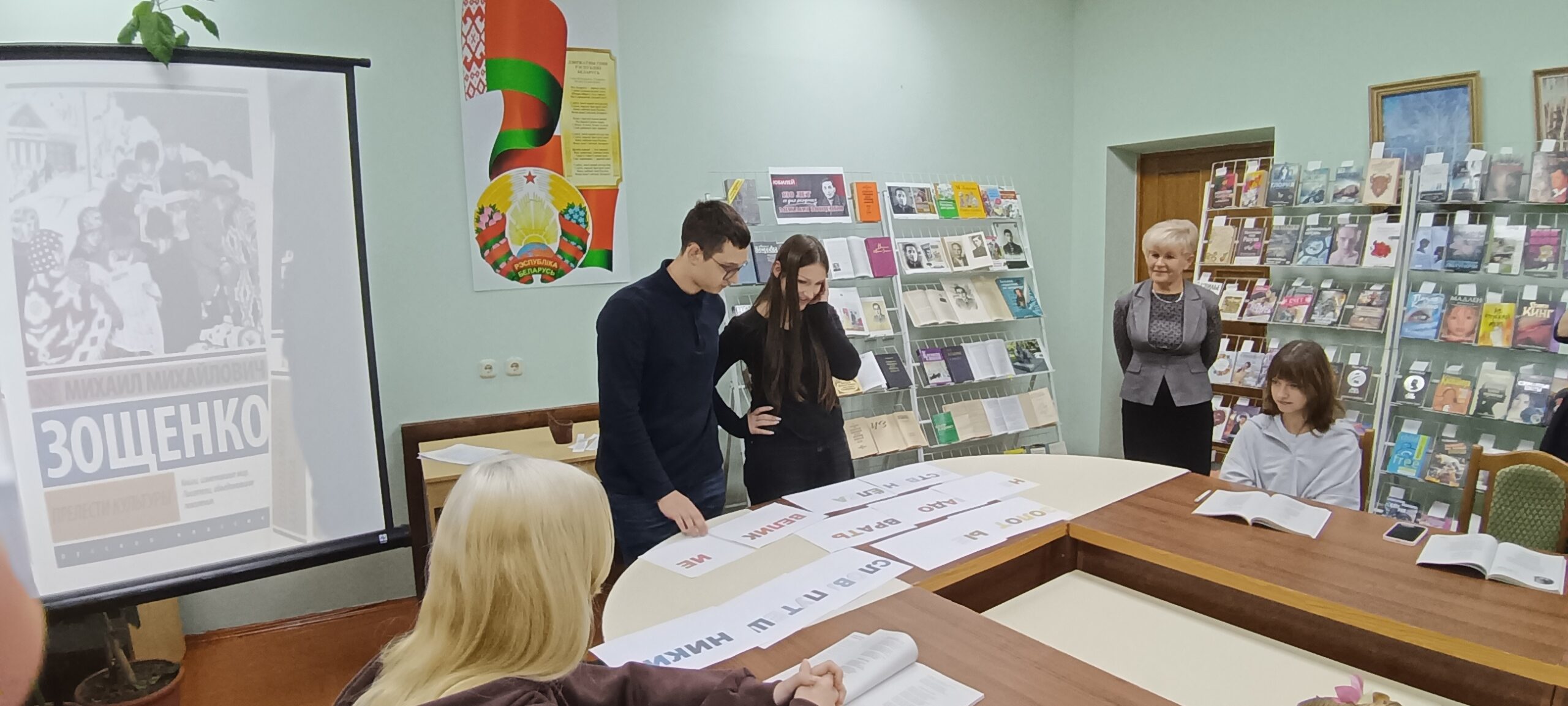 30 октября, на литературную панораму «Остроумный свидетель эпохи», посвященную 130-летию со дня рождения Михаила Зощенко, в Новогрудскую районную библиотеку пригласили учащихся Новогрудского торгово-экономического колледжа. Присутствующие узнали много интересных фактов из жизни и творчества писателя, драматурга, переводчика, мастера юмора и тонкого наблюдателя человеческих слабостей — Михаила Зощенко. Успешно справились учащиеся з заданием-инсценировкой отрывка из пьесы по рассказу Михаила Зощенко «Неудачный день». Тест «Закончите фразы из произведений Михаила Зощенко» дал возможность проверить, насколько хорошо знакомы его острые и точные высказывания. Из отдельных слов участники задания собрали названия рассказов писателя. Мероприятие дополнило видео с записью чтения Михаилом Зощенко своего произведения.