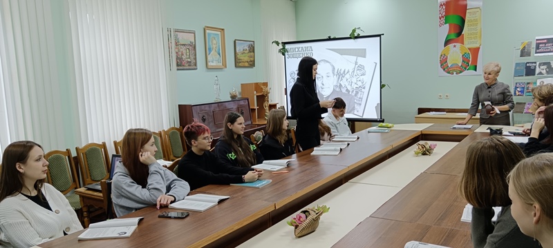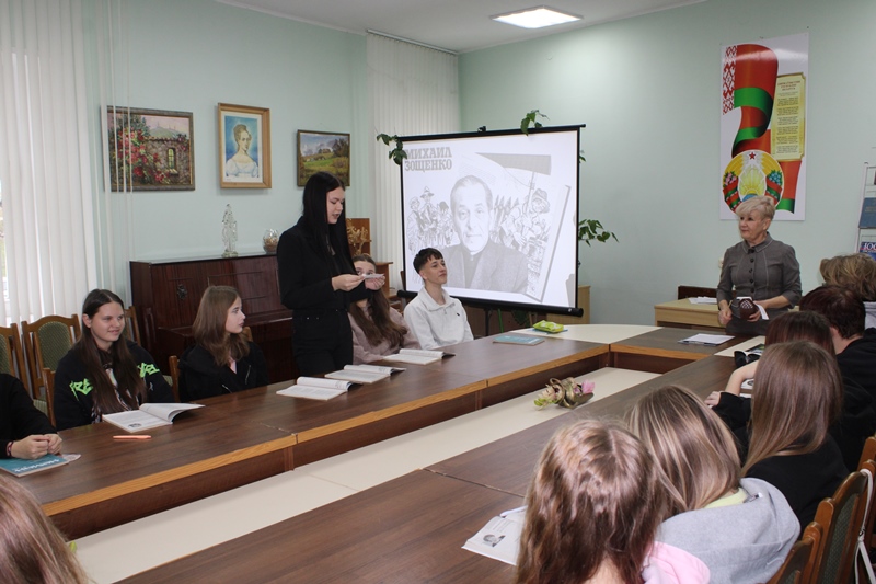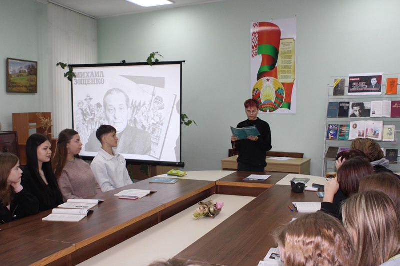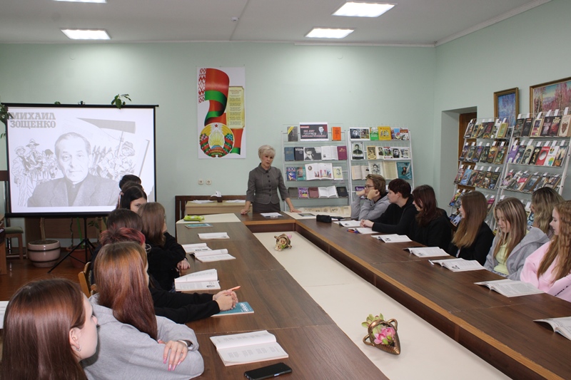 29 октября Новогрудская районная библиотека пригласила на мероприятие учащихся Новогрудского государственного колледжа технологий и безопасности. Литературная панорама «Остроумный свидетель эпохи» была посвящена 130–летию со дня рождения писателя, драматурга, переводчика, мастера юмора и тонкого наблюдателя человеческих слабостей Михаила Зощенко. Присутствующие узнали много интересных фактов из жизненного и творческого пути автора. Успешно справились учащиеся с заданием-инсценировкой отрывка из пьесы по рассказу Михаила Зощенко «Неудачный день». Тест «Закончите фразы из произведений Михаила Зощенко» дал возможность проверить, насколько хорошо знакомы его острые и точные высказывания. Из отдельных слов участники собрали названия рассказов писателя. Мероприятие дополнило видео с записью чтения Михаилом Зощенко своего произведения.