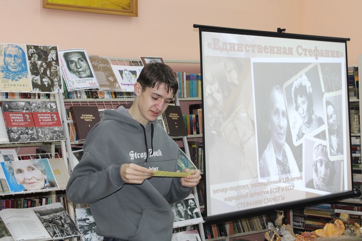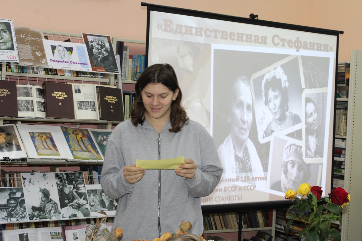 14 кастрычніка Навагрудская раённая бібліятэка ладзіла вечар-партрэт «Адзіная Стэфанія», прысвечаны 120-годдзю з дня нараджэння народнай артысткі Беларусі і СССР Стэфаніі Станюты. Бібліятэкар расказала пра жыццёвы і творчы лёс Стэфаніі Міхайлаўны, пра тэатральныя ролі легенды беларускай сцэны, цікавыя біяграфічныя факты і захапленні, пра яе ўнёсак у культурную спадчыну краіны. Юнакі і дзяўчаты адказалі на пытанні віктарыны, адгадалі любімыя гледачамі кінаролі С.Станюты.