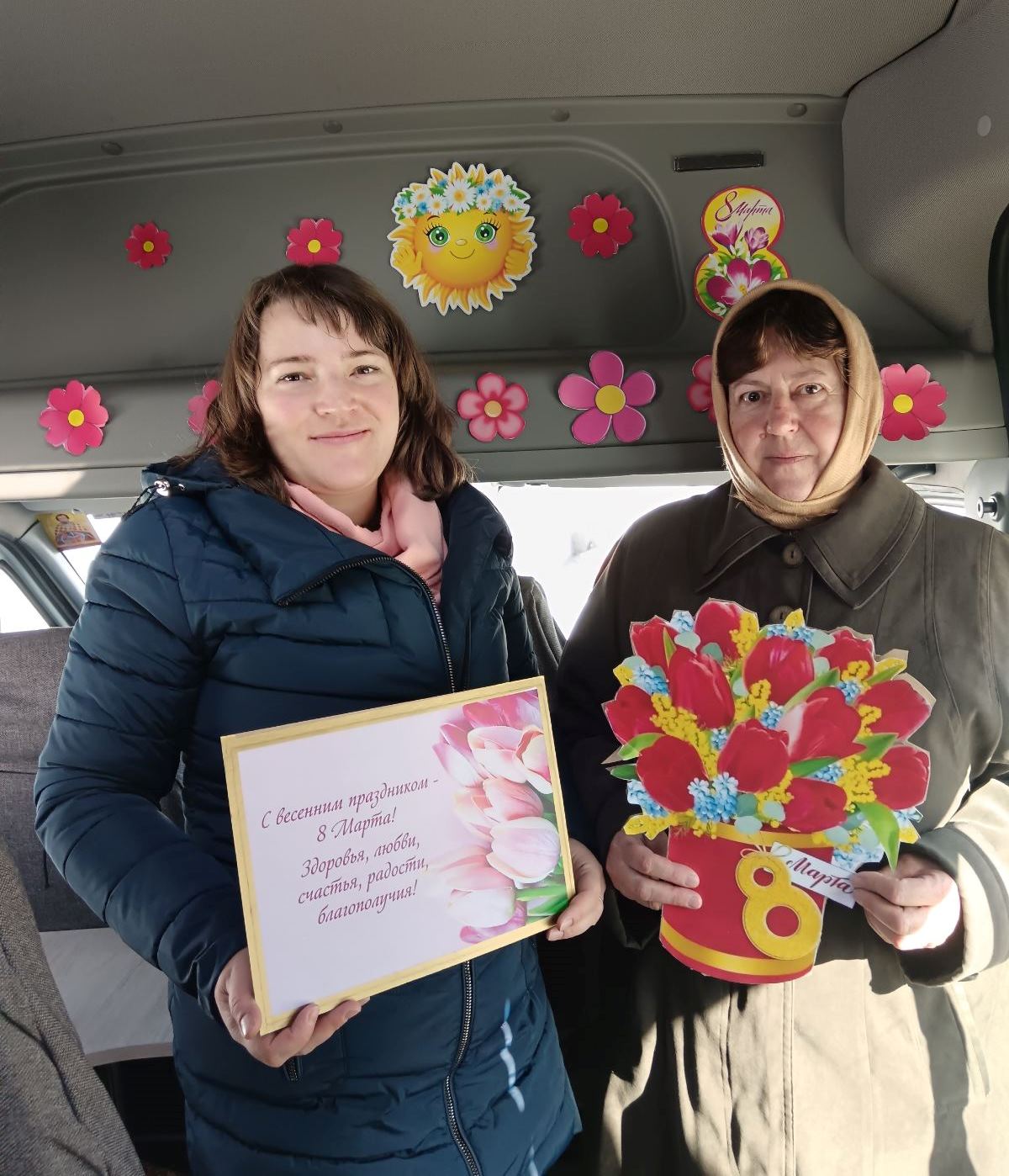 5 сакавіка каманда бібліобуса Навагрудскай раённай бібліятэкі віншавальным візітам “Цёплыя словы ў лепшы дзень сакавіка” вітала сваіх дарагіх чытачак.