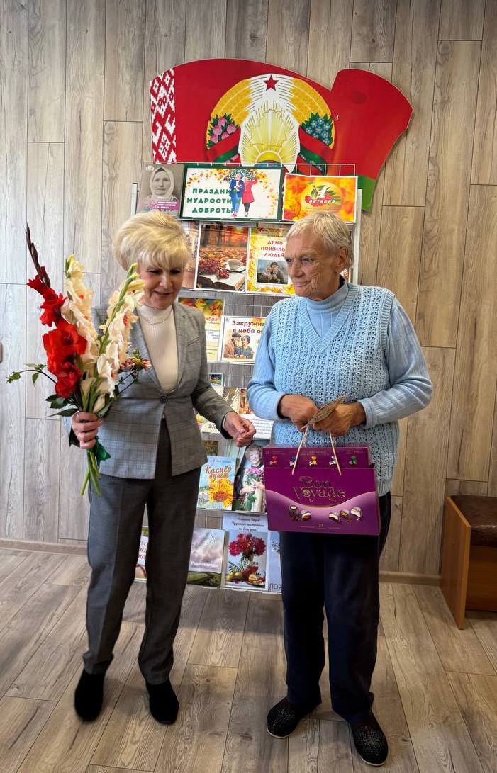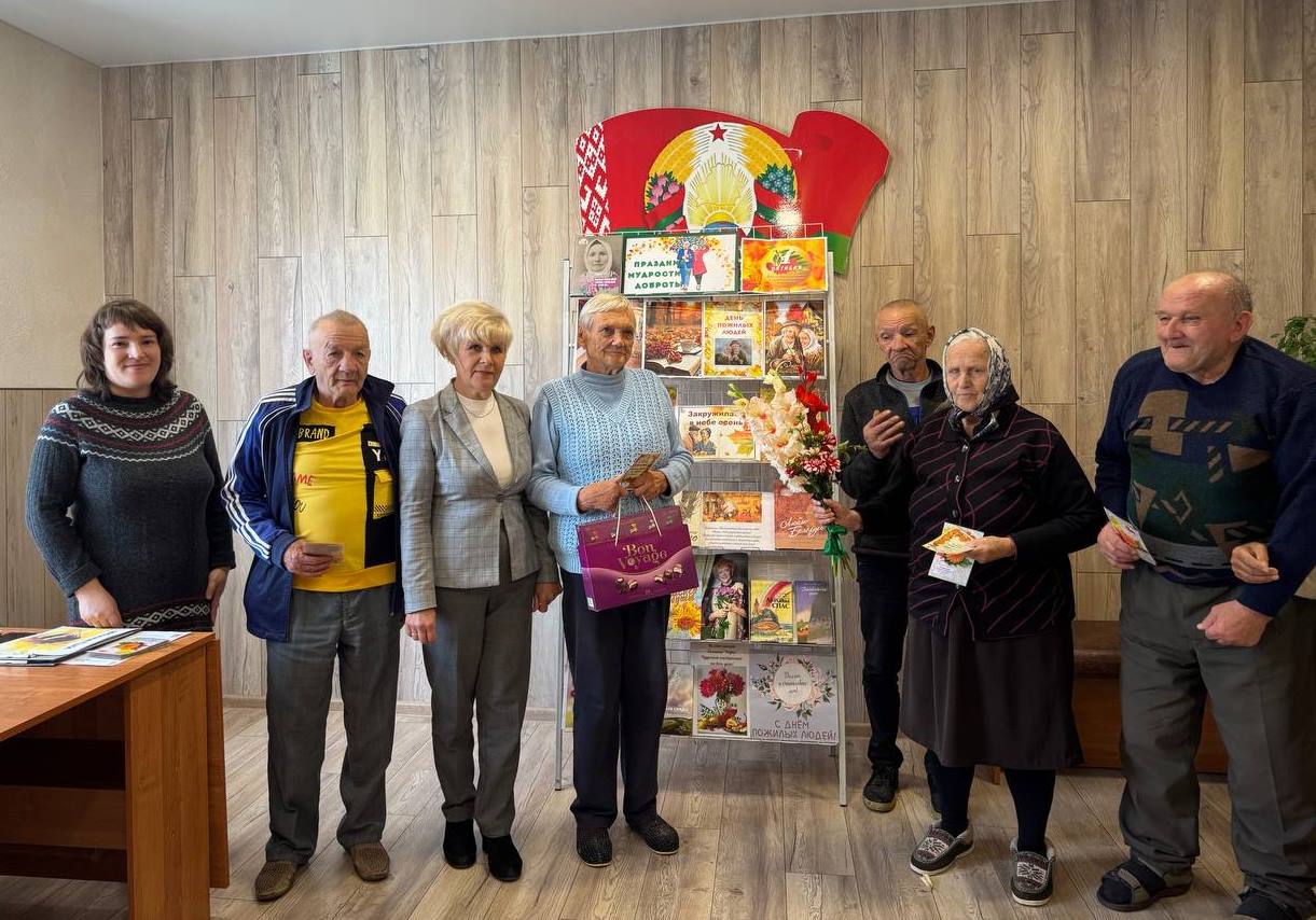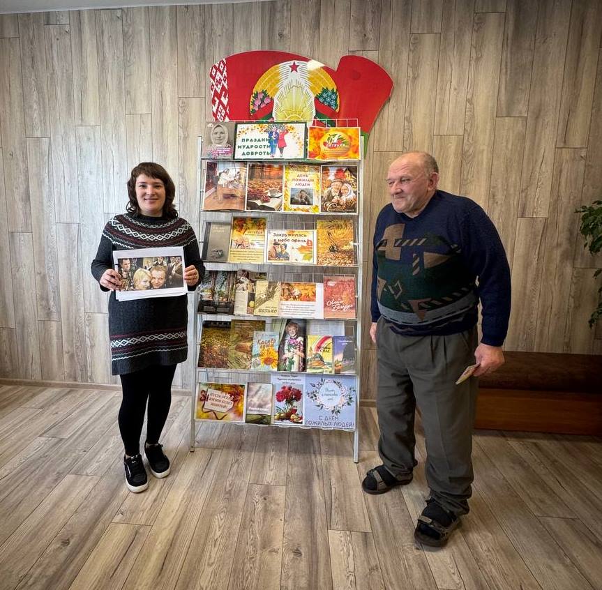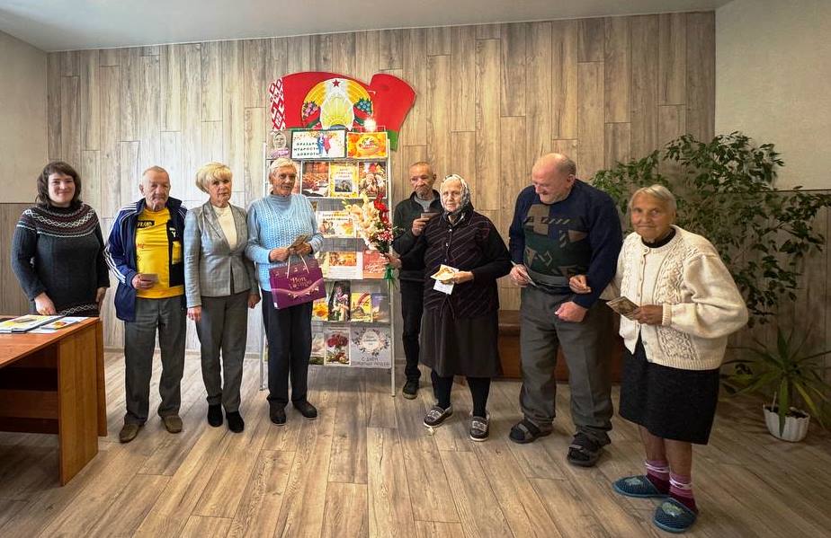 1 кастрычніка па добрай традыцыі каманда бібліобуса Навагрудскай раённай бібліятэкі наведала сваіх чытачоў з аддзялення кругласутачнага знаходжання грамадзян пажылога ўзросту і інвалідаў ТЦСАН і павіншавала іх з Днём пажылога чалавека. Бібліятэкары зладзілі літаратурна-паэтычную імпрэзу “Душы запасы залатыя”. Бібліятэкары прачыталі пазітыўныя вершы, прапанавалі цікавую кіна-віктарыну і вясёлыя загадкі. Спадзяёмся, што кветкі, салодкія падарункі, паштоўкі з прыемнымі пажаданнямі, а таксама добрыя кнігі і часопісы стварылі для людзей старэйшага пакалення сапраўдны добры настрой.