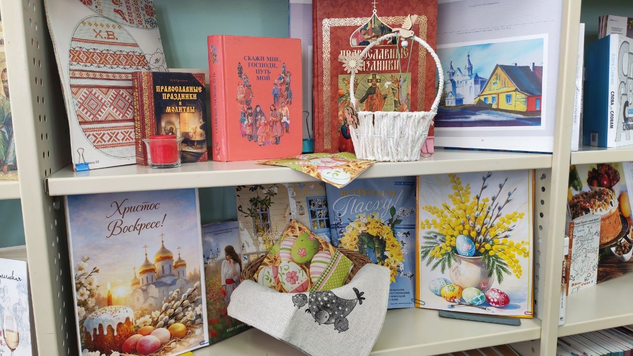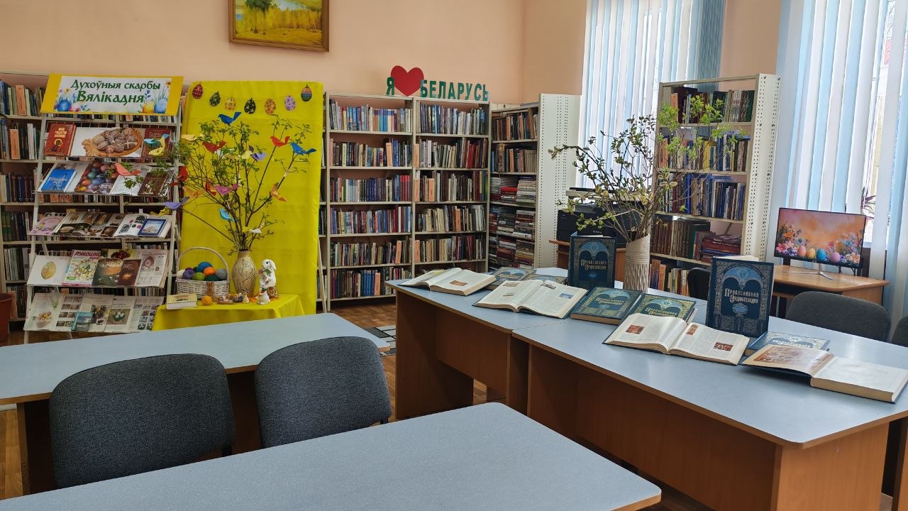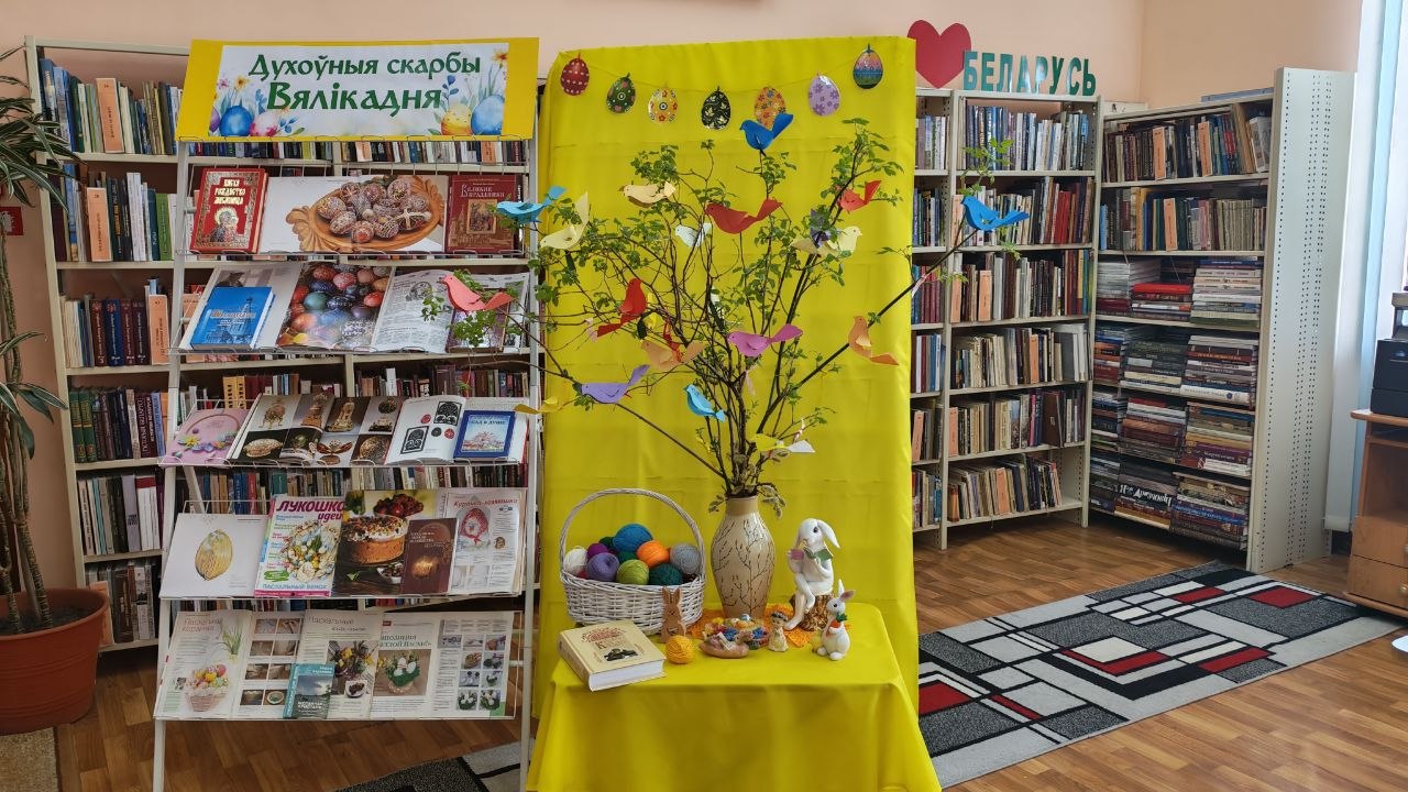 В Новогрудской районной библиотеке открылась выставка-инсталляция «Духовные сокровища Пасхи».
